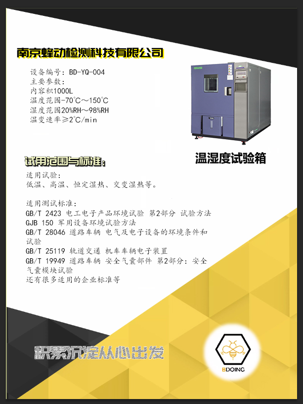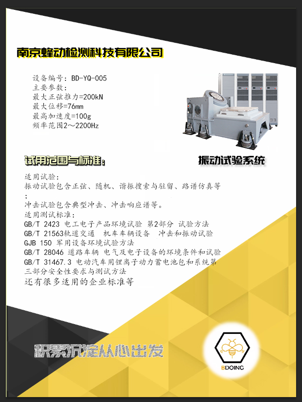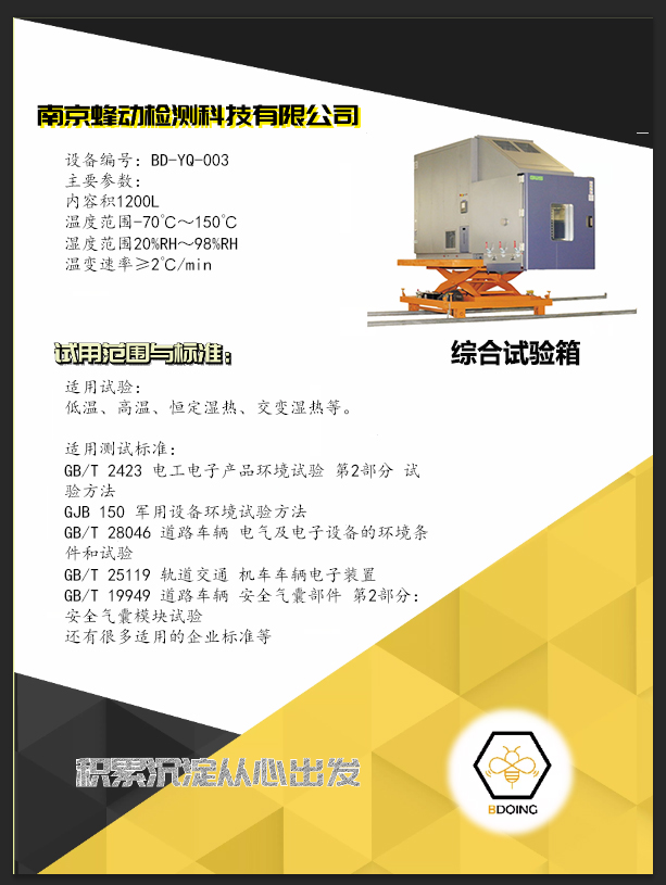 材料檢測、可靠性力學檢測、環(huán)境檢測、綜合環(huán)境檢測、電磁兼容、性能檢測、疲勞耐久檢測、包裝運輸檢測等。