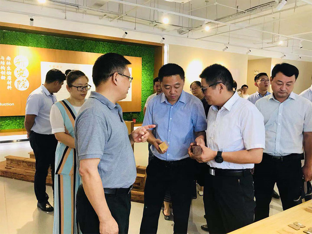 2019年8月13日上午,浦口區(qū)政府副區(qū)長陳曉路、區(qū)科技局局長董喬忠等領(lǐng)導(dǎo)蒞臨南林生物質(zhì)材料研究院考察指導(dǎo)工作??疾旖M一行了解了研究院的成長史,參觀了研究院的研發(fā)成果,并聽取了研究院黃東升院長的匯報。